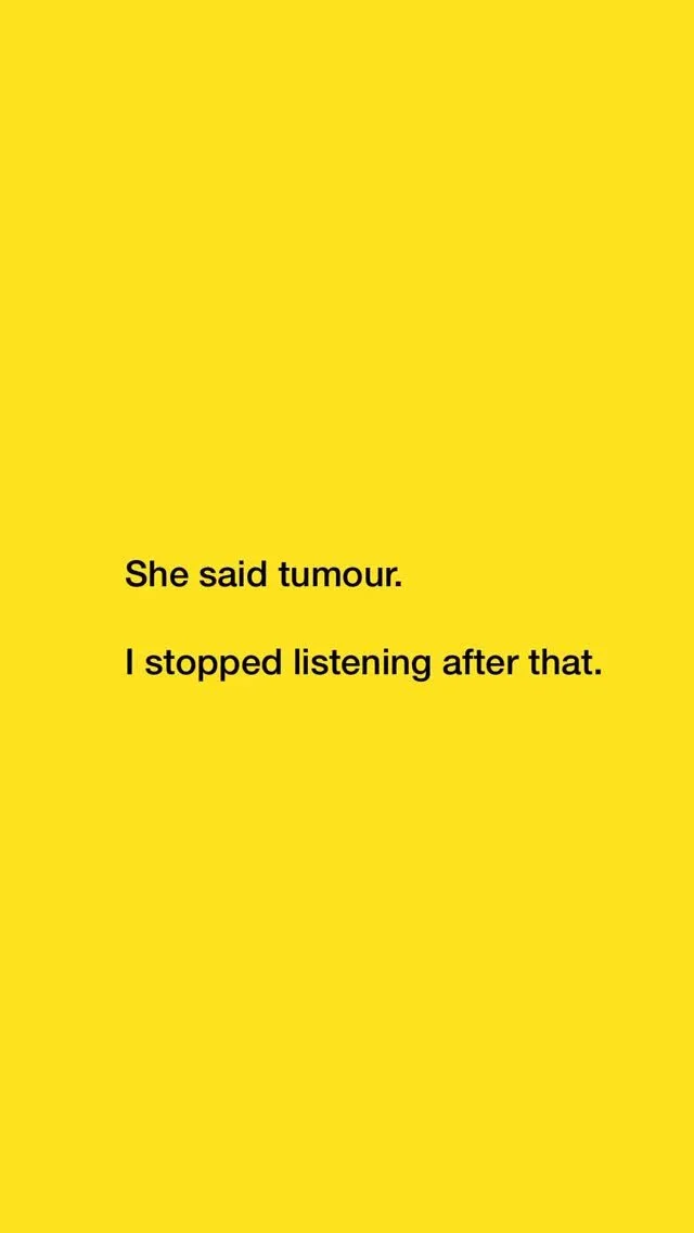 “I have a brain tumour.” I blurted out. Fuck! Why did I fucking just say that? I wasn’t even thinking about it.